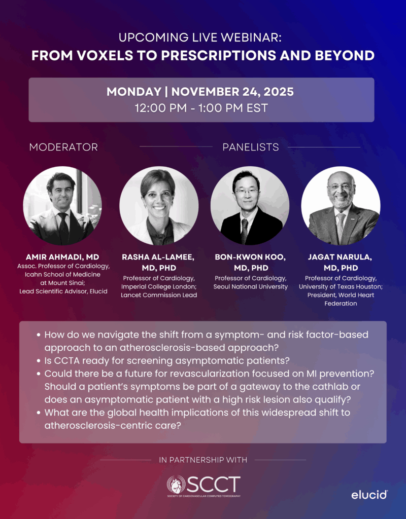 Leaders in clinical, product innovation, and market access will provide guidance for PlaqueIQTM strategy BOSTON and SCCT ANNUAL MEETING, MONTREAL – July 17, 2025 – Elucid, an AI medical technology company focused on providing physicians with a more precise view of...